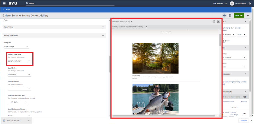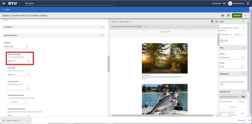Gallery pages have the option of a little more stylizing where you can choose how your photos are displayed.